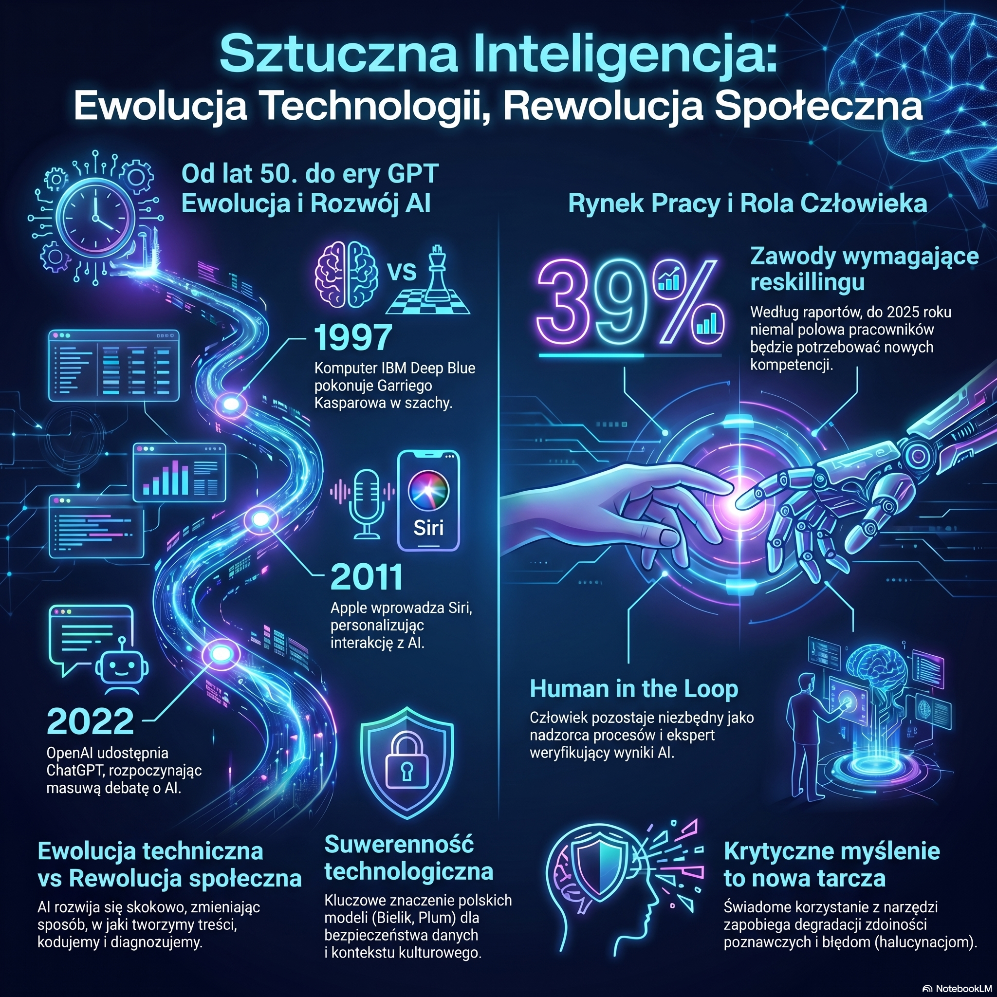 Przyszłość sztucznej inteligencji w Polsce zależy od budowania niezależności technologicznej oraz stworzenia ram prawnych, które nie będą hamować innowacji. Polska ma szansę stać się regionalnym liderem dzięki rodzimym modelom językowym, takim jak Bielik czy Plum, oraz planowanym inwestycjom w infrastrukturę obliczeniową. Uczestnicy debaty zgodnie uznali, że kluczem do sukcesu jest edukacja na każdym poziomie oraz promowanie sukcesów w adaptacji AI, przy jednoczesnym zachowaniu zdrowego rozsądku. Ostatecznie to od kondycji intelektualnej ludzi zależeć będzie, czy technologia ta stanie się narzędziem postępu, czy źródłem nowych problemów cywilizacyjnych.